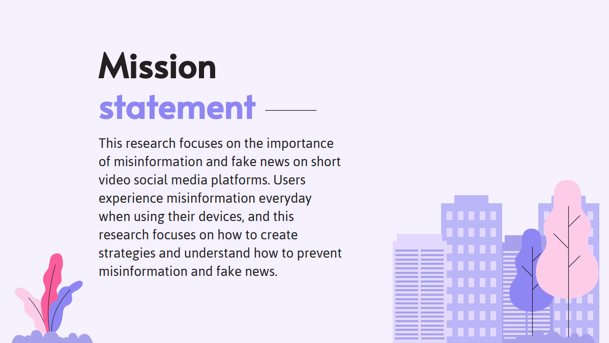 The research started through creating a screening survey that was sent through emails, social media, and through family and friends. They were required to offer us information about their usage on social media, and how often they have experienced misinformation and fake news throughout social media. From then I had conducted a Semi-structured interview with two individuals that had completed the survey.